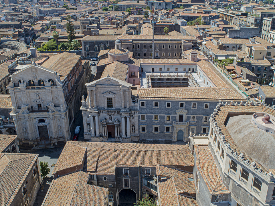 L’idea di condensare in un’unica via una serie di complessi ecclesiastici e di prospetti di chiese, determinando una sorta di “agorà” religiosa, situata peraltro in un luogo non molto distante dal grandioso complesso benedettino che dominava la città, venne perseguita a Catania, così come a Noto, a partire dalle esperienze avviate a Palermo pochi anni prima. Qui, tra 1686 e la fine del secolo, l’architetto Giacomo Amato era riuscito a definire una strada “romana” con grandiosi fronti ispirati all’architettura dell’Urbe. Questa parata scenografica era apparsa convincente e degna di una capitale; non è un caso che nel 1696 si trovasse a Catania, coinvolto in vari progetti, l’architetto Angelo Italia che era Palermo a stato testimone diretto di quella eccezionale impresa.