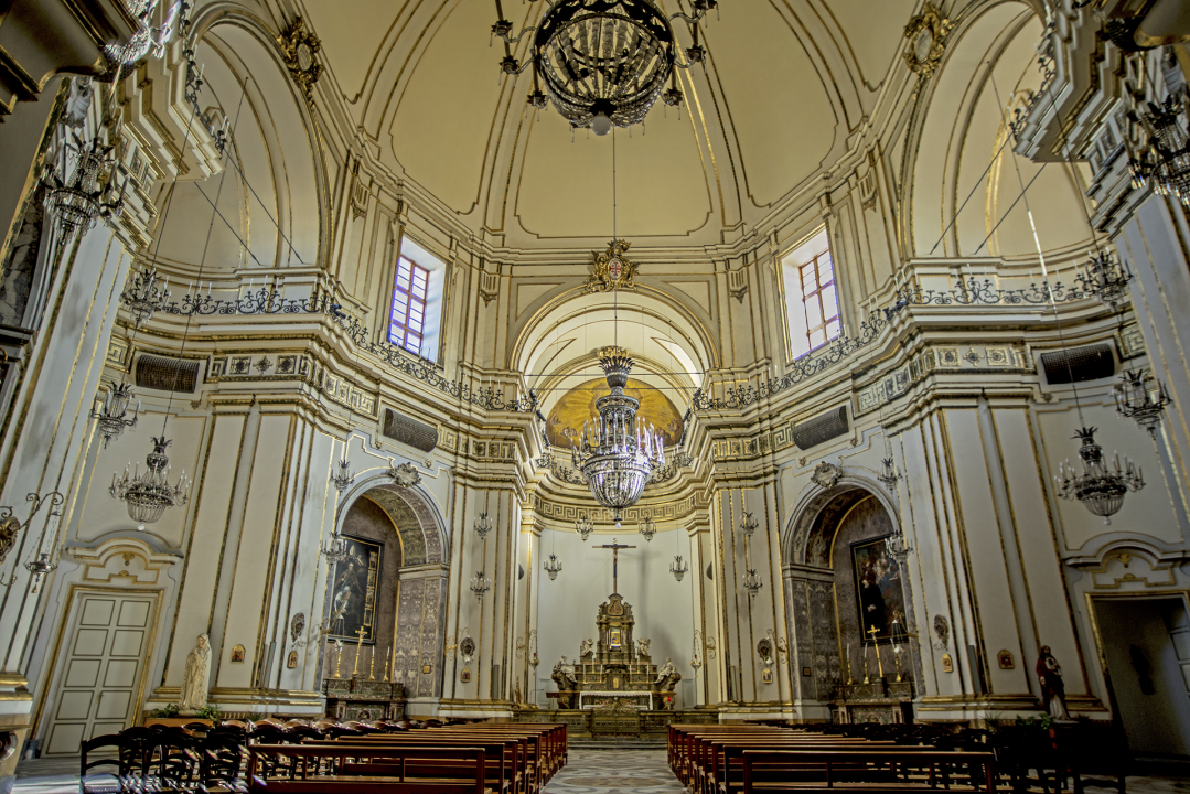 Chi percorre la via dei Crociferi, partendo da piazza San Francesco, vede svolgersi una sequenza di monumentali prospetti chiesastici, connotati da vibranti aggetti di semicolonne e cornicioni (come nelle chiese di San Francesco e San Benedetto), da imponenti colonne binate (come nel caso della chiesa di San Francesco Borgia dei Padri Gesuiti), da soluzioni convesse (chiesa di San Giuliano) o concave (chiesa dei Crociferi). Il risultato è quello di un’ ampia casistica delle possibili alternative che l’architettura tardobarocca del Settecento offriva.