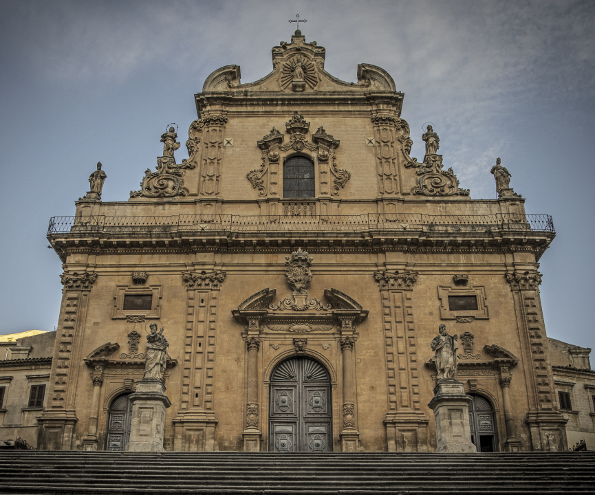 Le volute della chiesa, con il rigoglioso e virtuosistico movimento vegetale, denunciano la loro appartenenza alla seconda metà del Settecento. Ne consegue che per buona parte del XVIII secolo, la facciata risultava incompleta, una condizione comune a tutte le grandi chiese di Modica.