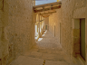 L’accesso alle celle dei monaci avveniva attraverso una scalinata, qui visibile insieme agli archi della loggia che dà sul cortile piccolo. La pietra bianca, molto diffusa in questo territorio, contribuisce a creare un’atmosfera radiosa che, al tramonto, vira verso i colori dell’oro.